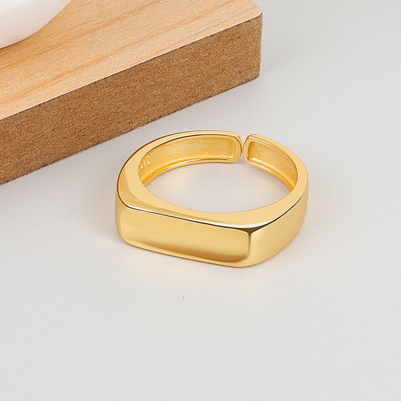 QMCOCO Prata Ouro Cor INS Estilo Quadrado Anel Simples De Ajuste De Abertura Lisa Para Mulher Presente De Festa