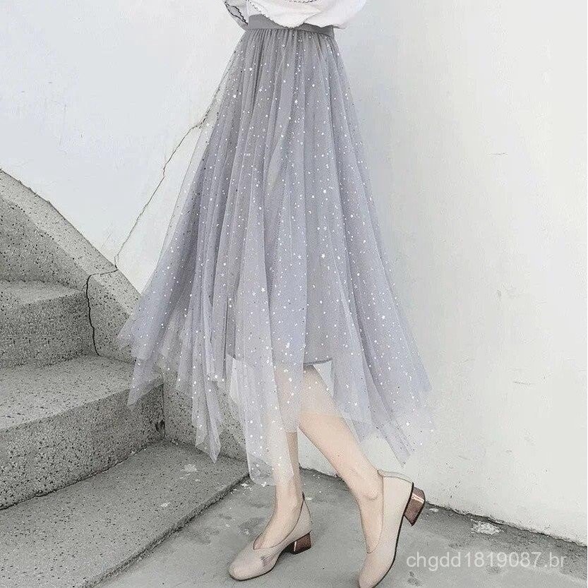 | Qooth Saia Tule Mulheres Outono Lisa Cor Midi Mesh Linha A Saia FCu... | R$ 58,62 | 74% | 4.8/5 | 7 |