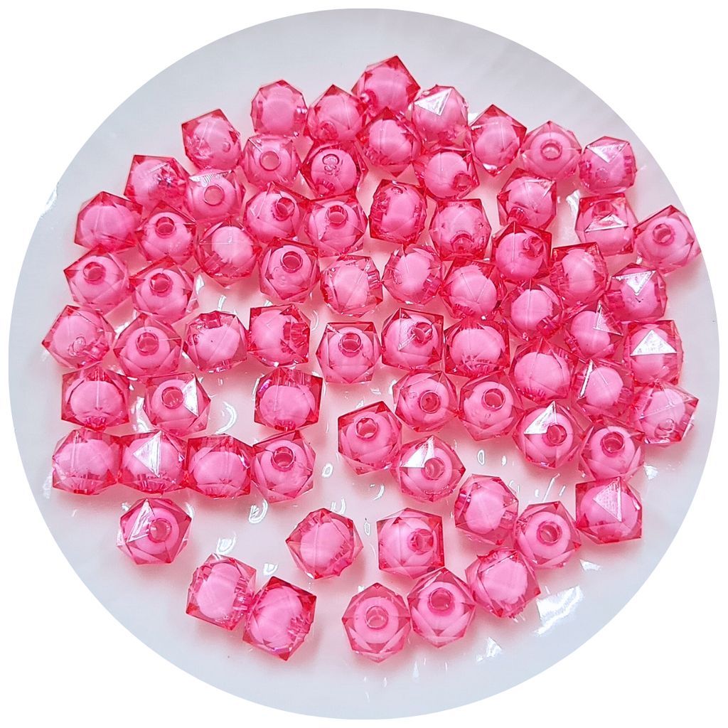 Tamanho: 8x8mm Distância entre as faces do furo: 6mm Material: Acrílico Quantidade: 2.000 unidades aproximadamente Furo: 2mm Atenção: Imagem ilustrativa podendo sofrer variações conforme a configuração de tela ou monitor em que está sendo visualizado; Este produto pode apresentar variação de cor de acordo com o lote;