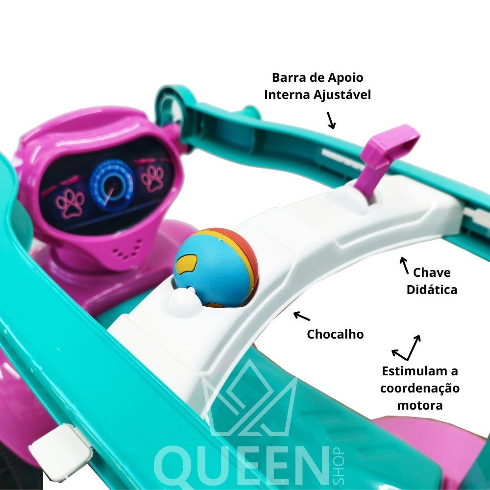 Quadriciclo 1 a 3 Anos - Até 30kg Carro Passeio Menina Ajuste Altura e Profundidade- Crianças De Até 1mt - QUEEN SHOP