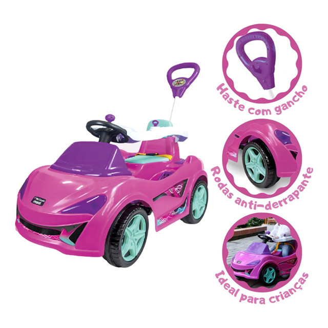 O anúncio contém: 01 Carro De Passeio MC Laram, 01 Anel de proteção, 01 Haste. Perguntas frequentes: As hastes direcionam as rodas? Sim. É fácil remover a haste? Sim. A buzina emite som? Sim. O anel de proteção pode ser retirado? Sim. A criança consegue manobrar as rodas? Sim, desde que o volante esteja destravado. Na brincadeira ou no passeio, a MC Laram estimula a imaginação para qualquer lugar, acompanhando o desenvolvimento da criança e se adaptando a duas fases. Dispõe de 2 modos de funcionamento: pedal e passeio, proporcionando mais conforto para os momentos em família. Benefícios: - Entretenimento assegurado. - Evolui junto com a criança. - Haste para empurrar com direção. - Haste com gancho para pendurar objetos leves, prático. - Anel de proteção removível, facilita o acesso da criança. Informações: Dimensões aproximadas do produto (AxLxC): 51,5cm x 52cm x 99cm; Idade recomendada: +9 meses; Peso máximo suportado: 30Kg; Peso máximo suportado pelo gancho da haste: 1,5Kg; Material: Plástico Resistente, Estruturas em metal. Fabricante: Maral. As cores do produto podem variar conforme o lote de fabricação. Todos os produtos são assegurados contra perda.