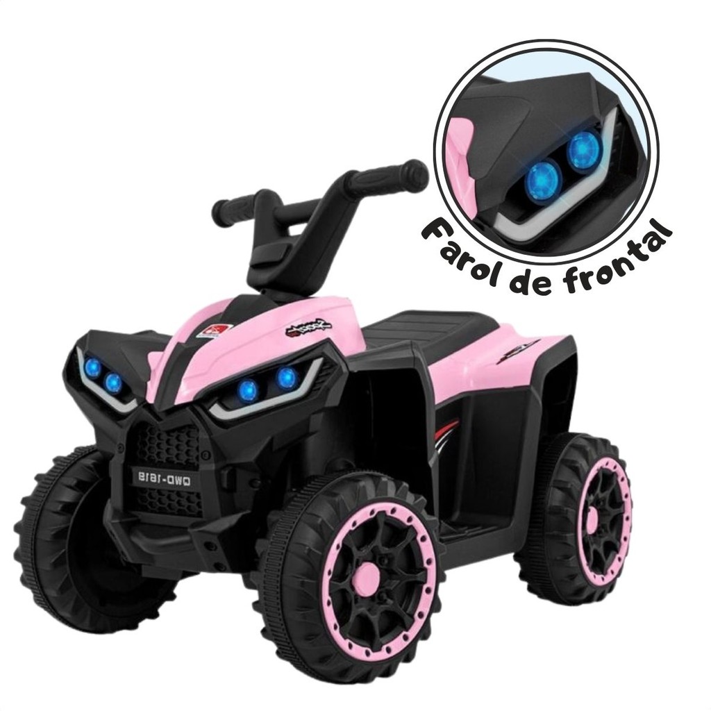 O anúncio contém: 01 Quadriciclo Elétrico 6 volts / 01 carregador bivolt. Perguntas frequentes: Já vem montado? Ele vem pré-montado, possui manual; Suporta até quantos quilos? Suporta até 30 Kg; Pode molhar? Não é recomendado; Possui luzes? Sim, farol dianteiro. Tem sons? Sim, painel multimídia. Tem entrada para pen drive? Sim. Tem Bluetooth? Sim. Benefícios: -Botão Liga/Desliga; -Painel com controle multimídia MP3 com entrada USB; -Câmbio com duas marchas: frente e ré -Painel com indicador de uso da bateria; -Pedal acelerador; -Acompanha carregador e bateria; -Bateria recarregável 06V.; -Luzes e sons. Informações: Dimensões aproximadas do Quadriciclo (AxLxC): 41cm x 47cm x 69cm; Peso do Produto: 5,2 Kg; Idade Recomendada: Crianças à partir de 3 anos; Peso máximo suportado: 30 Kg; Altura máxima da criança: 107 cm; Velocidade atingida: 3km/h; Tempo aproximado de funcionamento: 30 minutos; Carregador: Bivolt; Bateria: 1 bateria modelo 6V; Botão de selecionar velocidade: Não; Pedal acelerador: Sim; Direções do Quadriciclo: Frente e Ré; Luz: Sim, no farol dianteiro; Som: Sim, música; Cor: Rosa; Material: Plástico, metal, componentes eletrônicos; Modelo: Quadriciclo; INMETRO: 006156/2024 OCP: 0061; Fabricante: Bandeirante. - Produto novo e em estoque; - As cores do tecido ou produto podem variar de acordo com o lote de fabricação; - Todos os produtos têm seguro contra extravio.