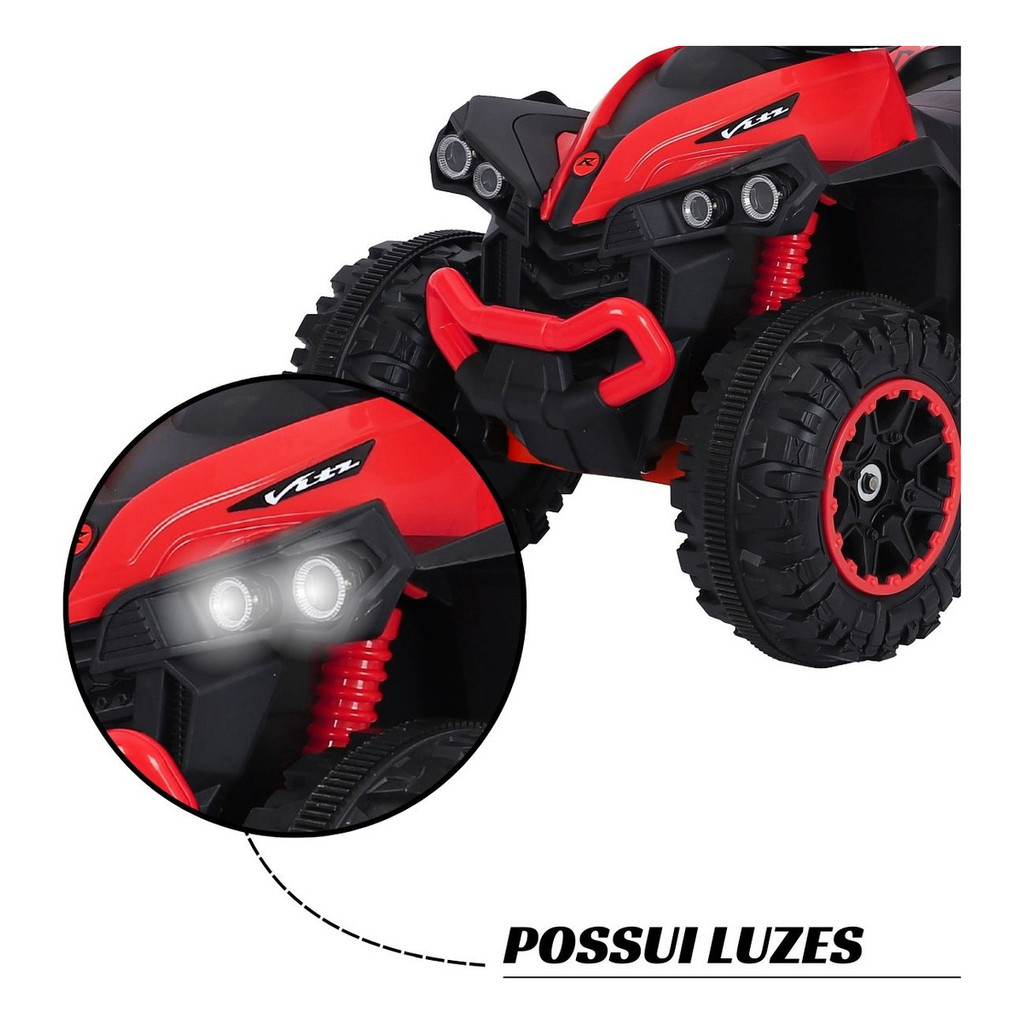 Quadriciclo Elétrico Infantil 6V Vermelho Com Empurrador E Cobertura Recarregável Luzes E Som Importway