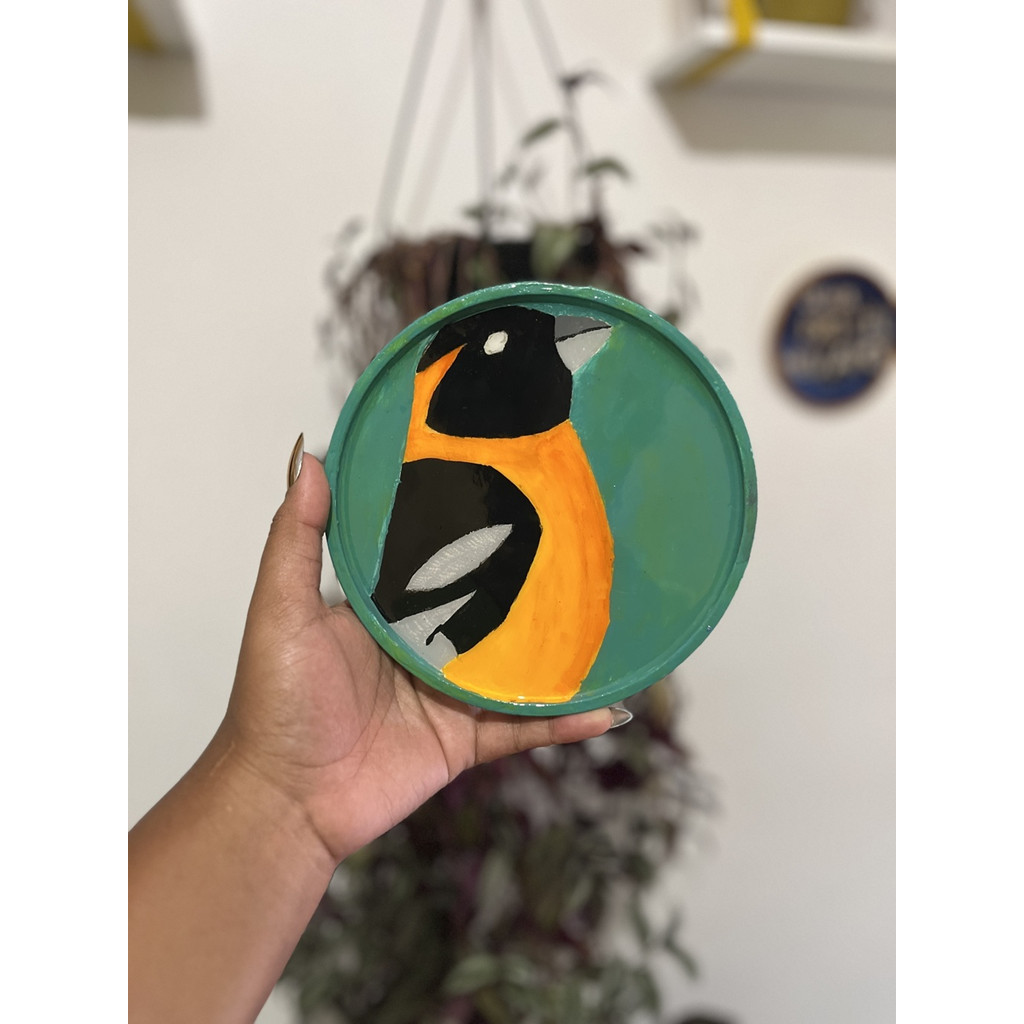 Delicado, colorido e cheio de personalidade, este quadrinho redondo decorativo com passarinho é uma peça artesanal feita à mão que leva leveza e brasilidade para a decoração. A ilustração da ave, com cores vibrantes e traços simples, cria um ponto de destaque suave e alegre na parede. Com 16 x 16 cm, o formato redondo foge do óbvio e funciona perfeitamente em composições de galeria, quartos, salas, varandas cobertas ou cantinhos criativos. Cada peça é única, com pequenas variações de pintura que reforçam o valor do feito à mão. ✨ Por que essa peça encanta: • Ilustração de passarinho que transmite leveza e liberdade • Combinação de cores vivas e harmônicas • Formato redondo moderno e versátil • Ideal para compor paredes afetivas ou presentear • Arte autoral, feita manualmente 🎨 Características do Produto: Quadrinho redondo artesanal Arte feita à mão Dimensões: 16 x 16 cm Tema: passarinho / ave decorativa Acabamento pintado manualmente Indicado para decoração de parede Peça exclusiva, com variações naturais do processo artesanal