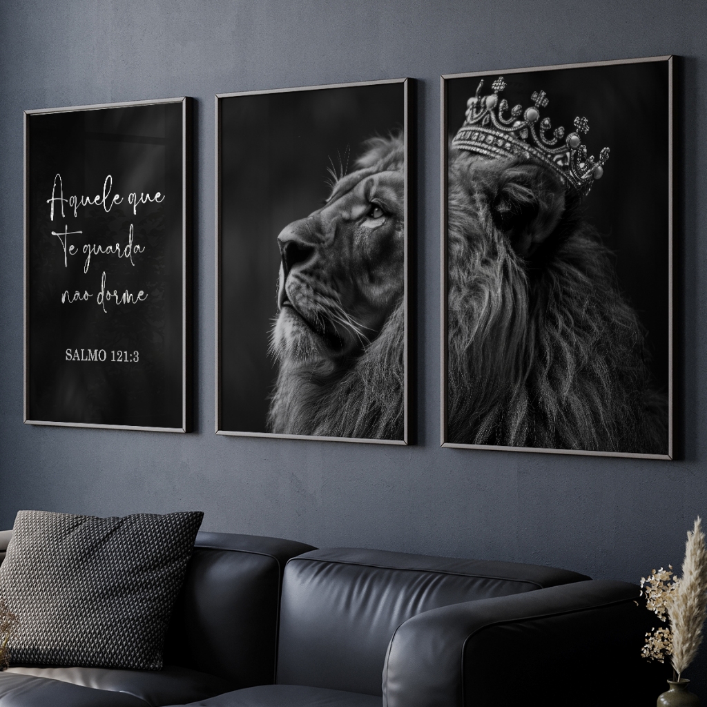 Quadro 3 Telas Aquele Que Te Quarda Nao Dorme Salmos 123:3 Escolha a Moldura Com Ou Sem Vidro Material da Imagem: Papel fotográfico premium. Material da Moldura: Madeira de reflorestamento revestida em preto. Dimensões: 60cm de largura e 90cm de comprimento. Acompanha: Suporte de serrilha Acabamento: Fita kraft. Destaques: Design atemporal, alta qualidade de imagem e moldura, certificado FSC de manejo florestal. Quadro Decorativo Composição 3 Telas 50x75cm: Material da Imagem: Papel fotográfico premium. Material da Moldura: Madeira de reflorestamento revestida em preto. Dimensões: 50cm de largura e 75cm de comprimento. Acompanha: Suporte de serrilha Acabamento: Fita kraft. Destaques: Design atemporal, alta qualidade de imagem e moldura, certificado FSC de manejo florestal