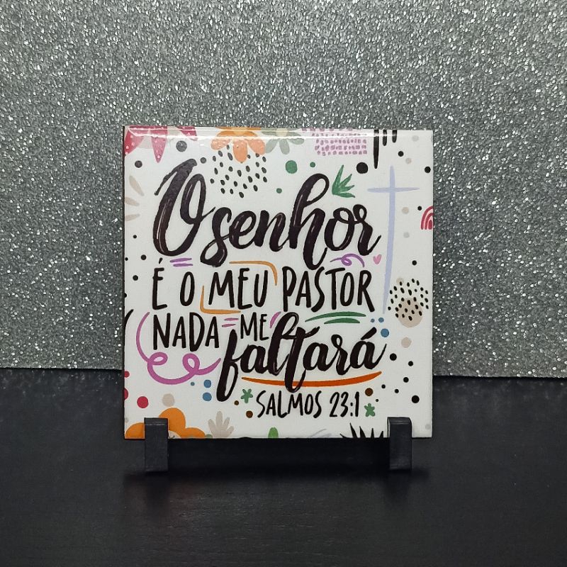 Quadro Azulejo Motivação Versículo Olho Grego 10x10cm com suporte