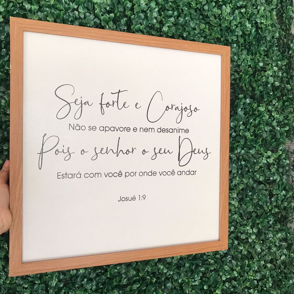 Quadro cobre caixa de luz com porta chaves com moldura 43x43 Seja forte e corajoso F.bege para sala/ quarto/decoração