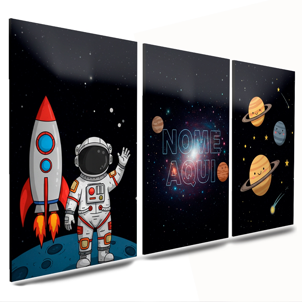 quadro criança infantil decorativo *nome personalizado* astronauta foguete espaço lua