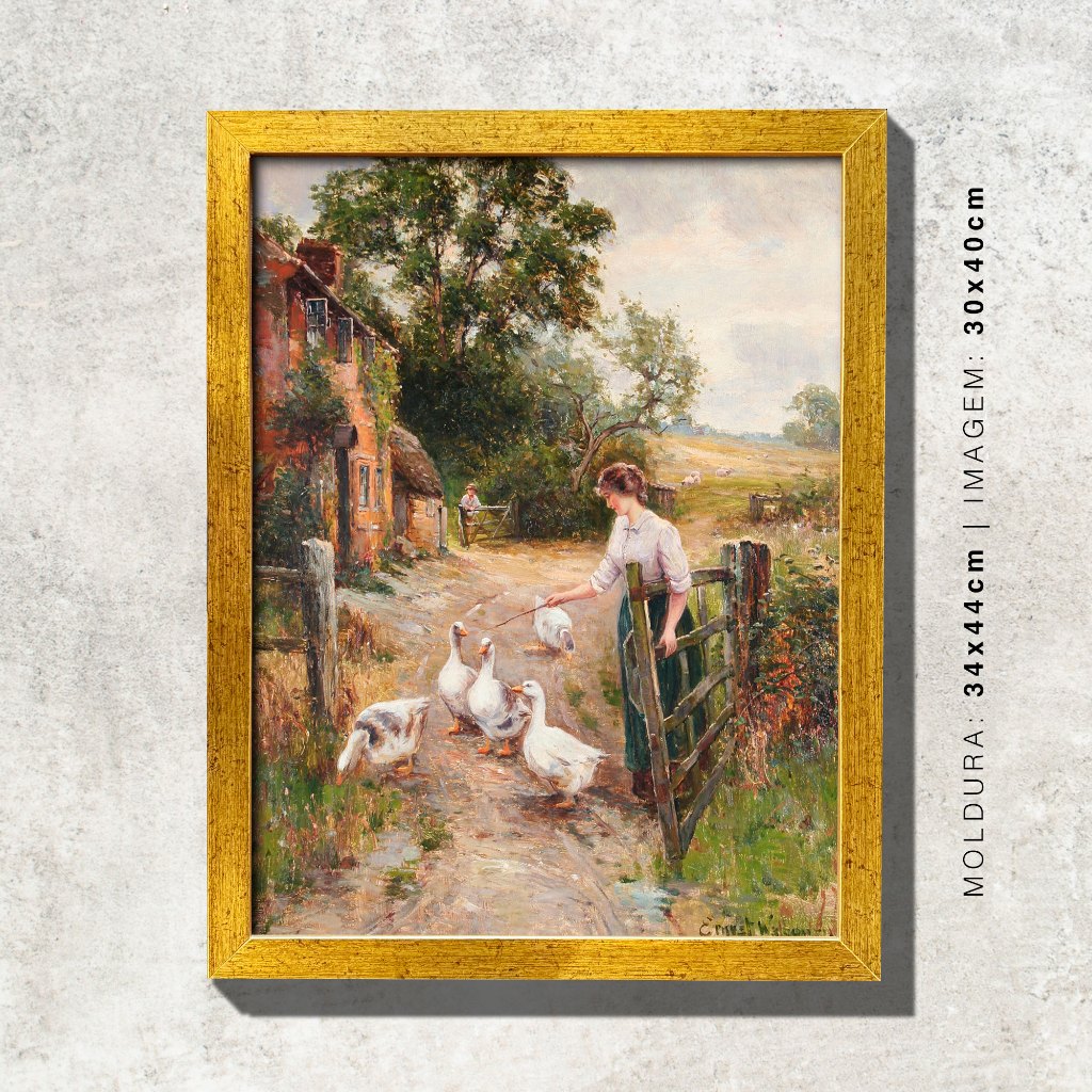 Quadro - Cuidando dos Gansos - Ernest Walbourn - Com Moldura