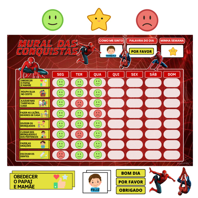 Quadro das Conquistas Infantil – Tarefas, Rotina e Recompensas Homem-Aranha