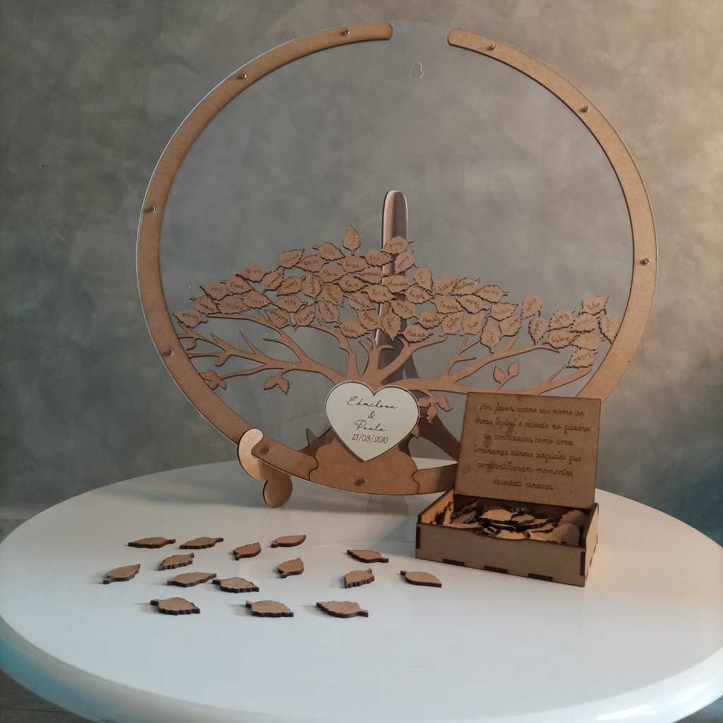 Este é um produto personalizado ideal para celebrar momentos especiais, como casamentos. Após a compra, entraremos em contato para obter as informações necessárias para a personalização, como a data do casamento e os nomes dos noivos. Caso não recebamos essas informações dentro de três dias úteis, procederemos com a fabricação do item sem as personalizações solicitadas. O produto será enviado conforme a descrição padrão, sem ajustes adicionais. Para garantir que seu item seja exatamente como imaginado, por favor, forneça as informações necessárias o mais rápido possível. Apresentamos o nosso encantador Quadro Decorativo com Vidro de Acrílico e Folhas de madeira. Este produto exclusivo é perfeito para tornar o seu casamento ainda mais especial e proporcionar uma lembrança única dos seus convidados. O quadro é projetado para que as folhas de madeira possam ser assinados pelos convidados durante a celebração do casamento. Essa interação cria um momento especial, onde cada convidado deixa sua marca afetiva no evento. As folhas de MDF são duráveis e de alta qualidade, garantindo que as assinaturas permaneçam intactas ao longo do tempo. Além de ser uma atração decorativa durante o casamento, o quadro tem um significado especial após a festa. Ele se torna uma preciosa lembrança, pois pode ser levado para a casa dos recém-casados, decorando o novo lar e servindo como uma representação tangível de todos os que compartilharam o dia especial com o casal. Para atender às suas necessidades e preferências, oferecemos várias opções de medidas para o quadro. Dessa forma, você pode escolher a dimensão ideal que se adapte ao espaço disponível e à estética desejada. Com design sofisticado e acabamento impecável, nosso Quadro Decorativo com Vidro de Acrílico e Folhas de Madeira é uma escolha excepcional para adicionar um toque de elegância e personalidade ao seu casamento. Deixe que ele se torne o centro das atenções e uma memória eterna de um dia repleto de amor e felicidade. ATENÇÃO: A caixa vai contendo uma frase que solicita ao convidado para registrar seu nome, essa frase é padrão. Em ocasiões com muitas folhas, a pilha pode ultrapassar a altura da caixa, mas isso não é um problema. A função principal da caixa é elucidar o funcionamento do quadro de assinaturas e evitar que as peças caiam da mesa, não sendo necessário fechá-la. Trabalhamos com MDF em dois tons distintos: pinos (mais claro) e eucalipto (mais escuro). A cor é determinada com base no nosso estoque no momento da fabricação, após a compra. Em alguns casos, o produto pode apresentar uma combinação das duas cores, o que não interfere na funcionalidade e muitas vezes acrescenta um charme adicional com a variação de tonalidades. Exceto quanto o MDF é branco, neste caso ele é enviado branco mesmo.
