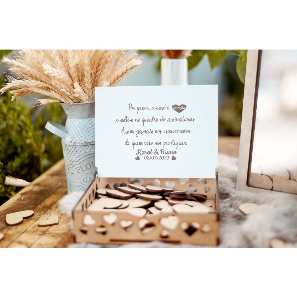 Quadro de Assinaturas para festa Casamento com Mensagens para os Noivos - Caixa personalizada