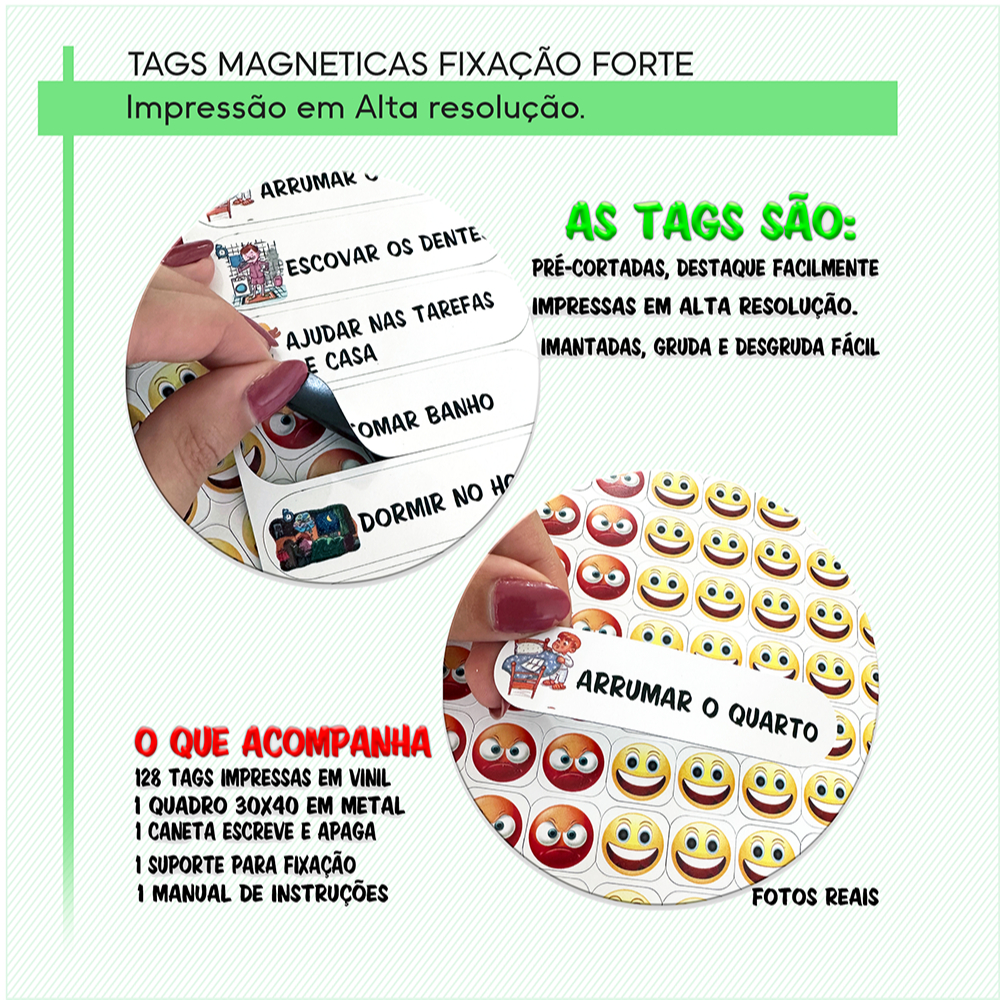 Quadro de Rotina Infantil - Quadro de Incentivo - Quadro de Tarefas - Para Geladeira ou Parede 30x40 cm g
