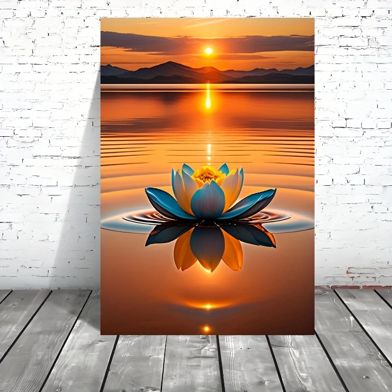 Quadro Decoração Sala Flor de Lótus no Pôr do Sol - Paz, Equilíbrio e Decoração Zen Resolução 4k