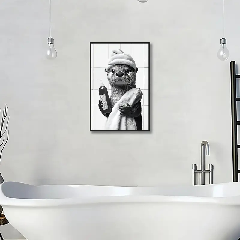 Quadro Decorativo 1 Peça Lontra no Banho Para Quarto Sala Banheiro e Hall