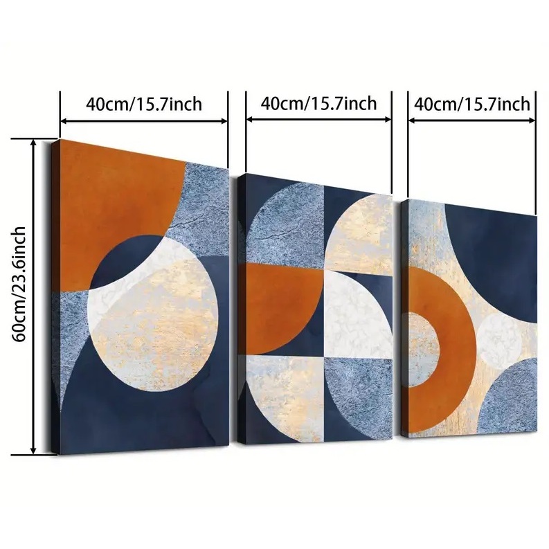 Quadro decorativo 3 peças 40x60 Geométrica Abstrata Moderna azul marrom decoração para casa sala quarto hall