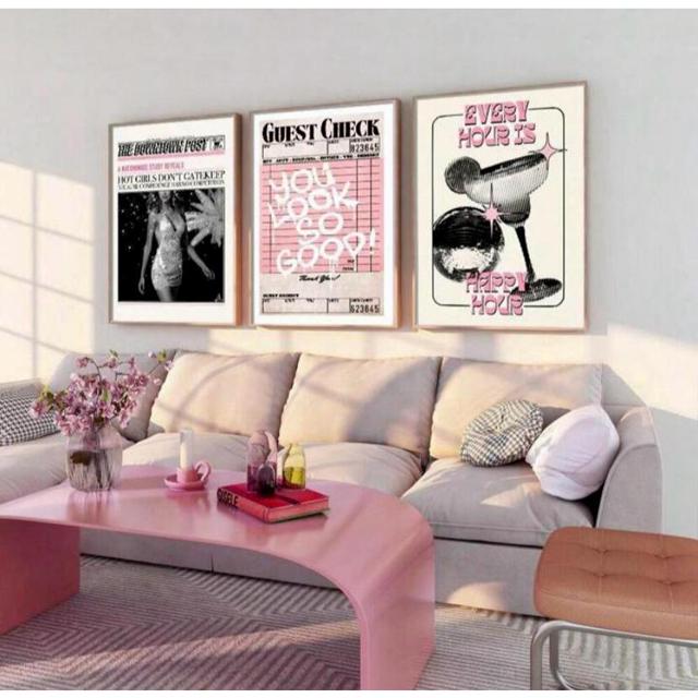Quadro decorativo 3 peças grande feminino drink frase rose mulheres