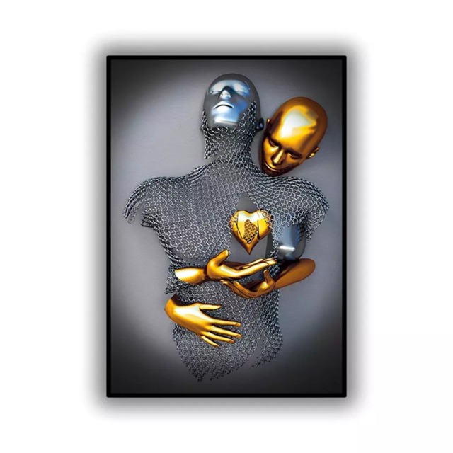 Quadro Decorativo Abstrato 50x30 Corpo Prata Ouro Mosaico Sala Quarto Escritório Premium