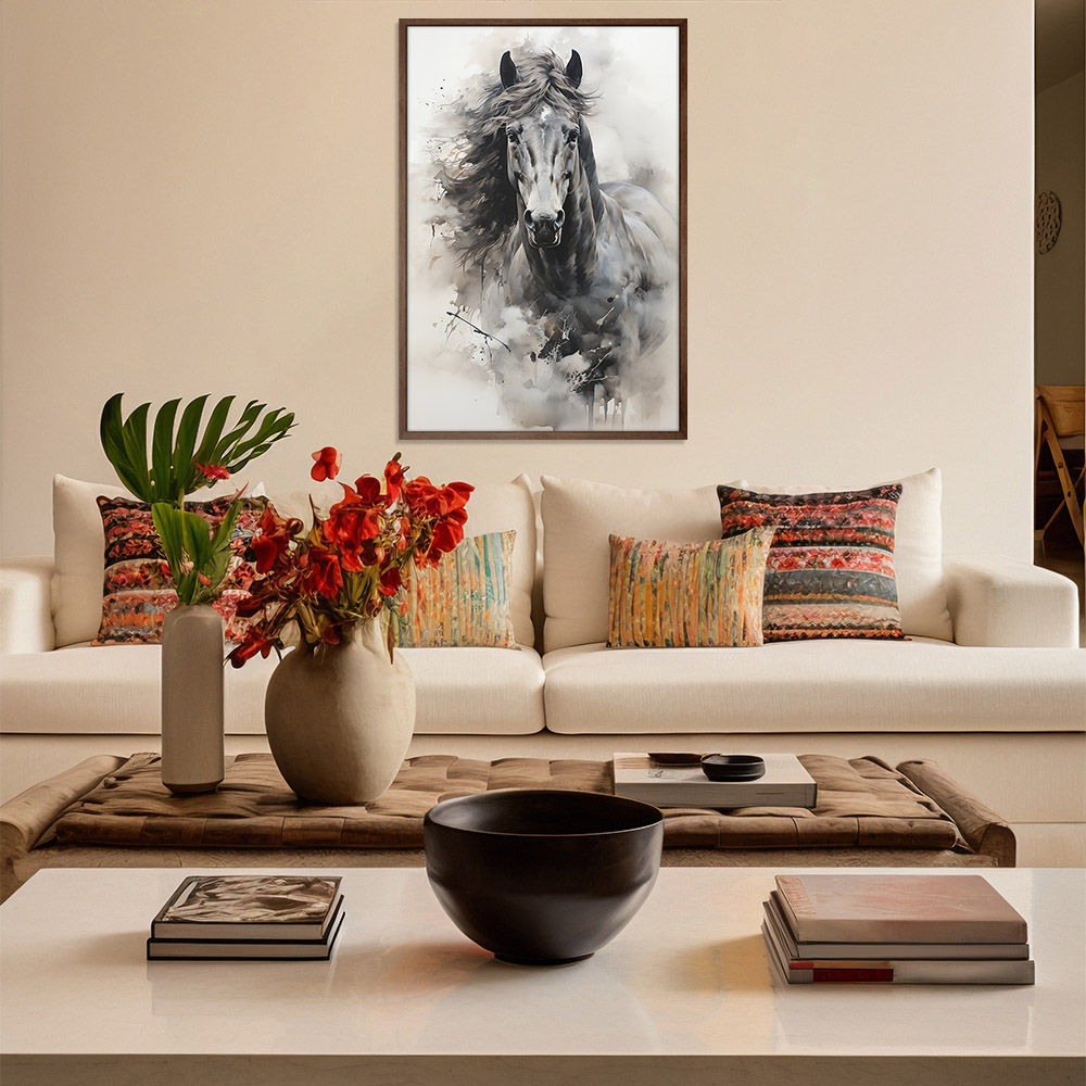 Quadro Decorativo Cavalo Aquarela Moldura Cx Alta 100x66