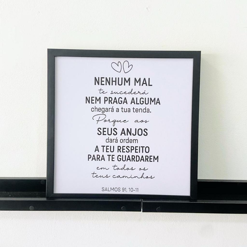 Quadro decorativo cobre caixa de luz com moldura 43x43 Nenhum mal salmo salmos 91,10-11 sala/quarto/cozinha/decoraçã