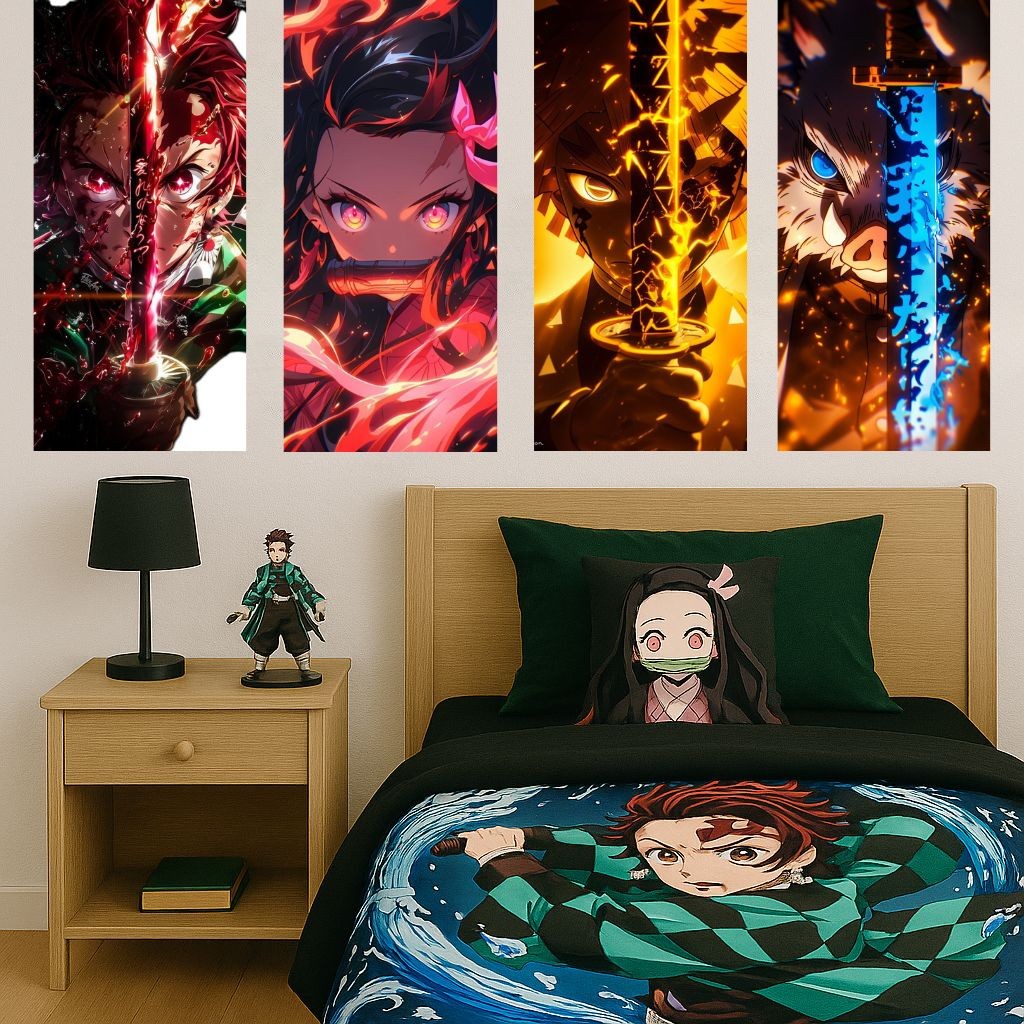 Quadro Decorativo com 1,3 e 4 unidades Anime Demon Slayer Tanjiro Kamado-Hashiras-Kimetsu no Yaiba 45x20 cm