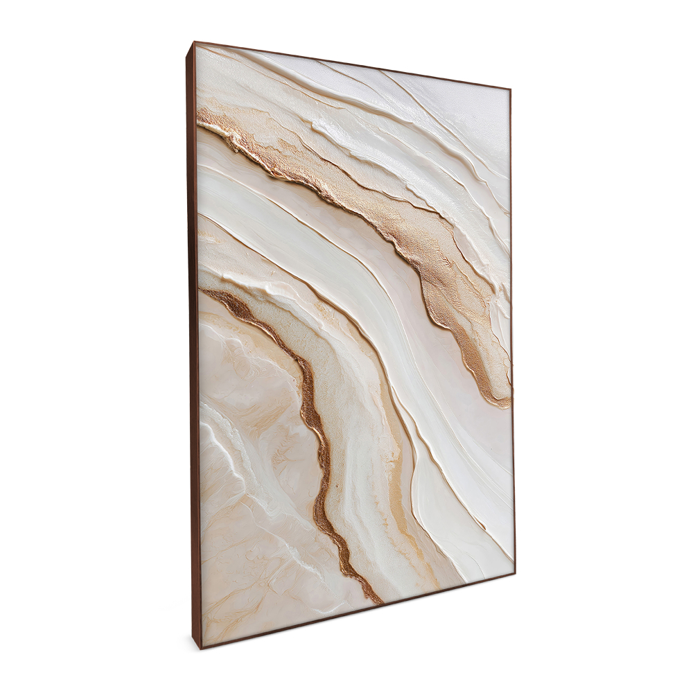 Quadro Decorativo Com MOLDURA FILETE Sala De Jantar Quarto Escritório Abstrato Mar Branco E Dourado