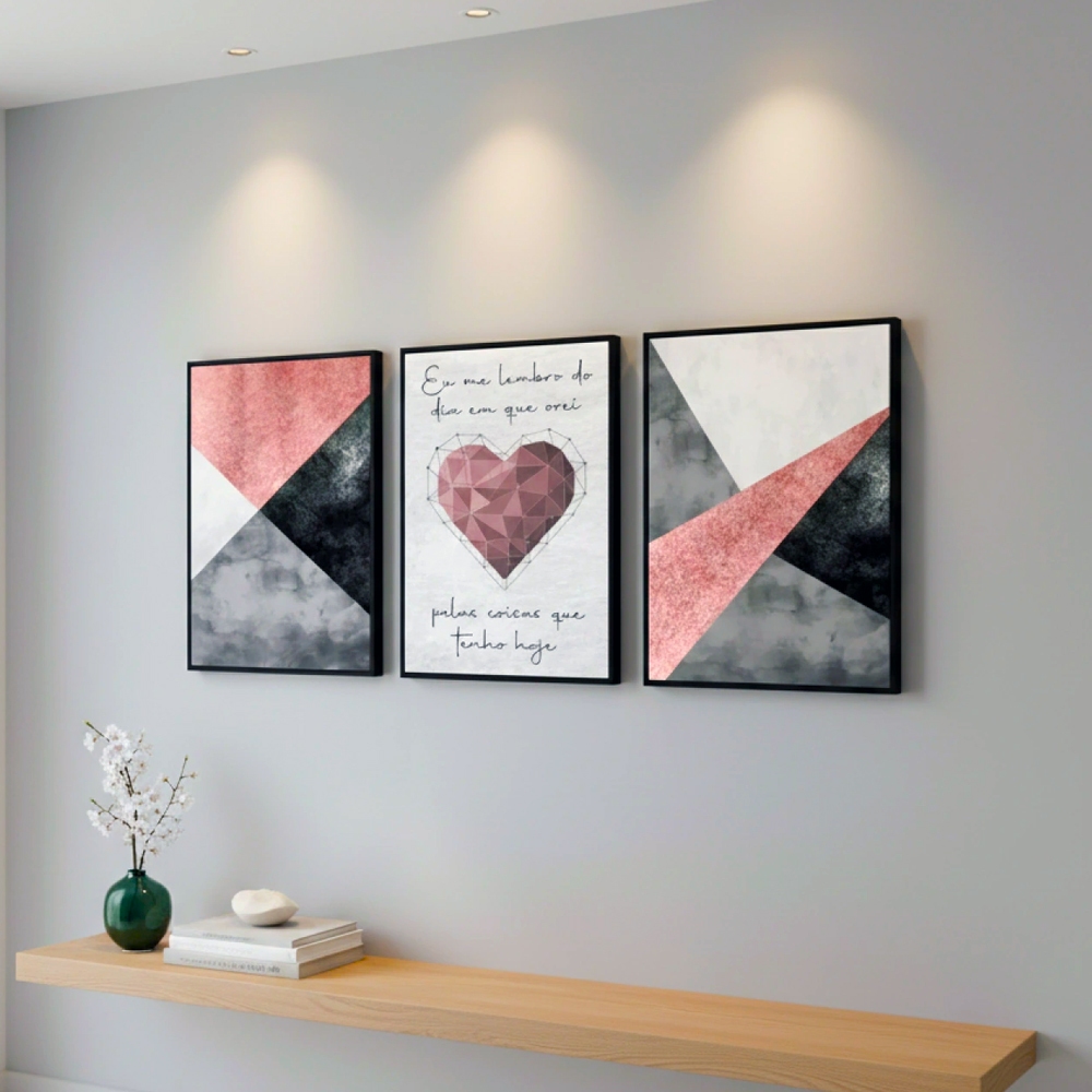 Quadro decorativo coração arte abstrato eu me lembro dos dias que orei 3 peças sala quarto cozinha e escritorio
