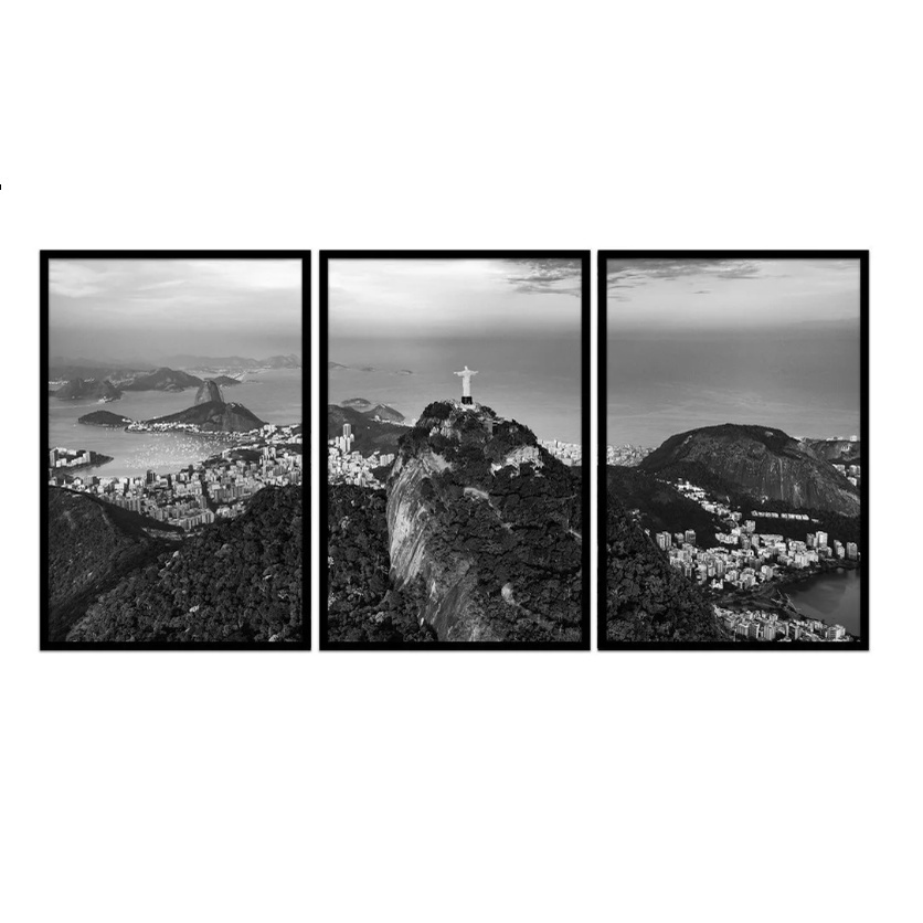 Quadro decorativo corcovado rio de Janeiro preto e branco 3 peças sala quarto cozinha e escritório