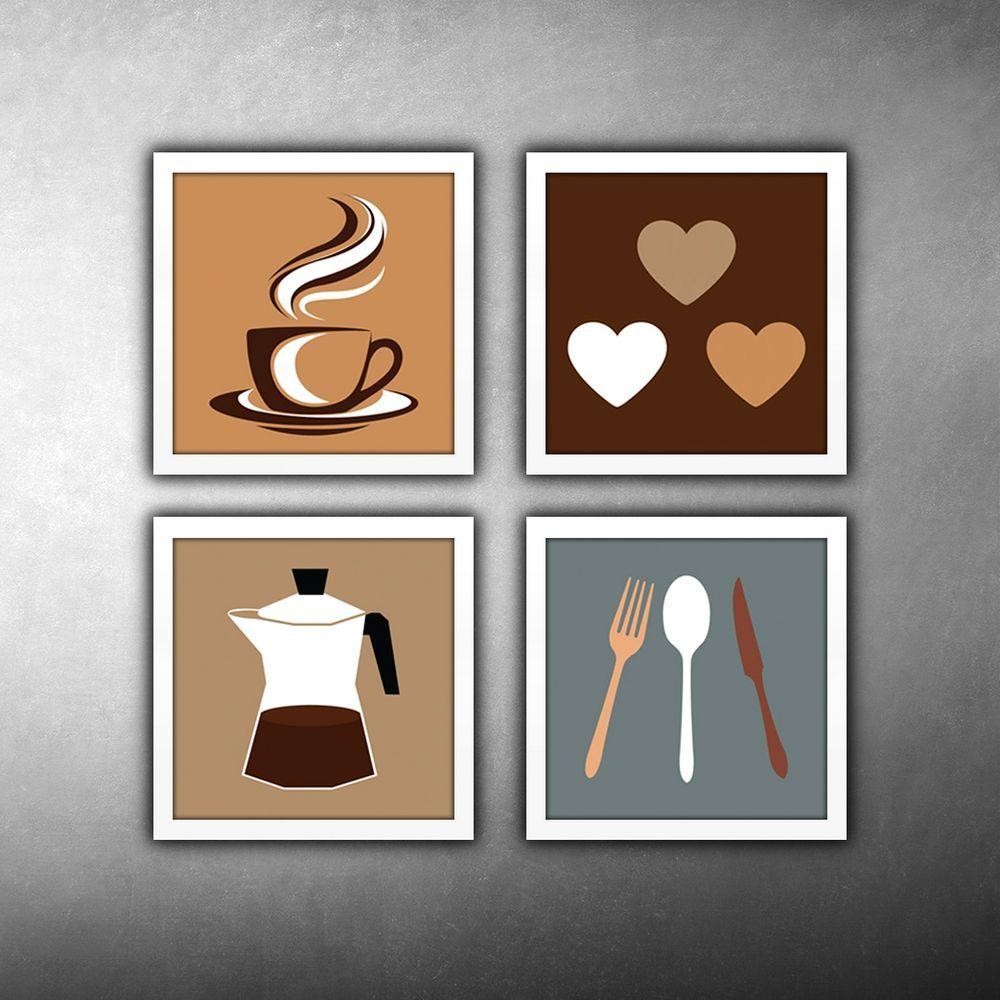 Quadro Decorativo Cozinha Copa Cantina Objetos Café Xícara Titulo Moldura Branca Quadro Decorativo Cozinha Copa Cantina Objetos Café Xícara MEDIDAS - 4 Peças 20x20 cm: MATERIAL - MDF 3mm de espessura: MOLDURA - 1cm de espessura e 2cm de largura, madeira maciça de reflorestamento, laqueada fosca como acabamento, 100% livre de imperfeições. Cantos com acabamento excelente: TIPO DE IMPRESSÃO -Impressão em alta resolução livre de imperfeições; FINALIZAÇÂO E ACABAMENTO - O quadro decorativo é finalizado com grampos e pendurador; OBSERVAÇÕES - Material liso, sem relevos; - Moldura sem vidro (Por que não vai com vidro? Como nossas imagens são impressas em material vinil brilho altamente durável, dispensa o uso do vidro. Fique tranquilo, sua imagem não corre o risco de desbotar); - Fabricação própria; - O produto pode ocorrer de ter uma leve diferença de tom na cor da que está na tela do seu computador ou celular. LIMPEZA APÓS FIXAÇÃO - A limpeza pode ser realizada apenas com um pano seco macio, se desejar pode ser úmido, porém sem conter álcool ou produtos químicos. Os quadros decorativos são muito utilizados por arquitetos e amantes da decoração. Quadros do mesmo tom, que possuam correlação e que "ornem" entre si podem ser utilizados juntos para dar uma personalização maior a um determinado ambiente. Composições podem ser utilizadas em salas, cozinhas, varandas, quartos ou qualquer ambiente que você queira deixar com a sua cara. Sendo assim aArte na Arte criou pra você uma enorme variedade em Quadros Decorativos de cores e desenhos que seguem as últimas tendências de decoração. Transforme seu ambiente, decore sua sala, quarto, cozinha, escritório ou presenteie alguém especial com o Quadro DecorativoArte na Arte. Esperamos que se sinta à vontade e encontre aqui o SEU estilo, e ao olhar pra o seu ambiente, seja ele qual for - possa dizer: "Agora meu ambiente está completo!" Tire todas suas dúvidas conosco, estamos sempre à disposição. Imagem ambiente fornecido por Freepik.