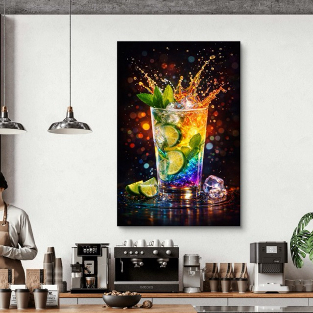 Quadro decorativo moderno com arte de drink colorido em splash vibrante, trazendo limão, hortelã e gelo em uma composição cheia de energia e sofisticação. As cores intensas criam um visual impactante que valoriza qualquer ambiente. MATERIAL: MDF 3MM (florestada, tratada e imunizada) -São feitos em adesivos "vinil" de alta qualidade em impressão. INFORMAÇÕES SOBRE O PRODUTO: - O quadro NÃO POSSUI MOLDURAS, pronto para pendurar na parede. INSTALAÇÃO - Não é necessário furar a parede para instalação, pois, enviamos fitas com grande poder adesivo para melhor instalação. Trabalhamos com as seguintes medidas... Especificações Técnicas - MEDIDA DA PEÇA : 20X30CM (TAMANHO PEQUENO) 40X60CM (TAMANHO MÉDIO) 90X70 (TAMANHO GRANDE) 110X80CM (TAMANHO SUPER GRANDE) OBS: (SELECIONAR NA VARIAÇÃO O TAMANHO DA PLACA) CUIDADOS: - Limpeza: Utilizar Pano Seco ou espanador. - Utilizar em ambientes internos. - Não exponha o produto em paredes com sinais de umidade ou sob luz direta do sol, pois estes são prejudiciais a longevidade do mesmo. - Não coloque peso sobre o produto ou empilhe, isto poderá deformar sua tela. QUALQUER DÚVIDA SOBRE O PRODUTO CONTATE NOSSA EQUIPE, IREMOS ATENDE-LOS DA MELHOR MANEIRA POSSIVEL E TIRAREMOS TODAS SUAS DUVIDAS !!