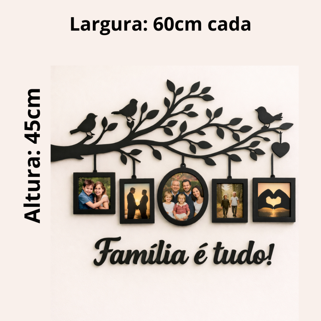 Quadro Decorativo em MDF – Árvore com Molduras para Fotos de Família
