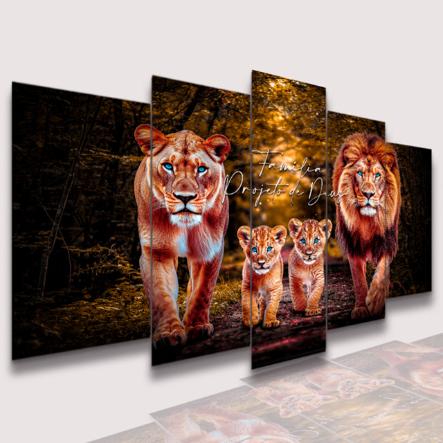 Quadro Decorativo família Projeto De Deus Leão 2 Filhotes Decoração Elegante Exclusivo Lançamento Tamanho GG