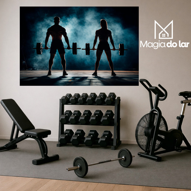 Quadro Decorativo Fitness Casal Academia Treino Motivação Parede Sala Quarto Decoração Moderna Premium Arte HD Visual