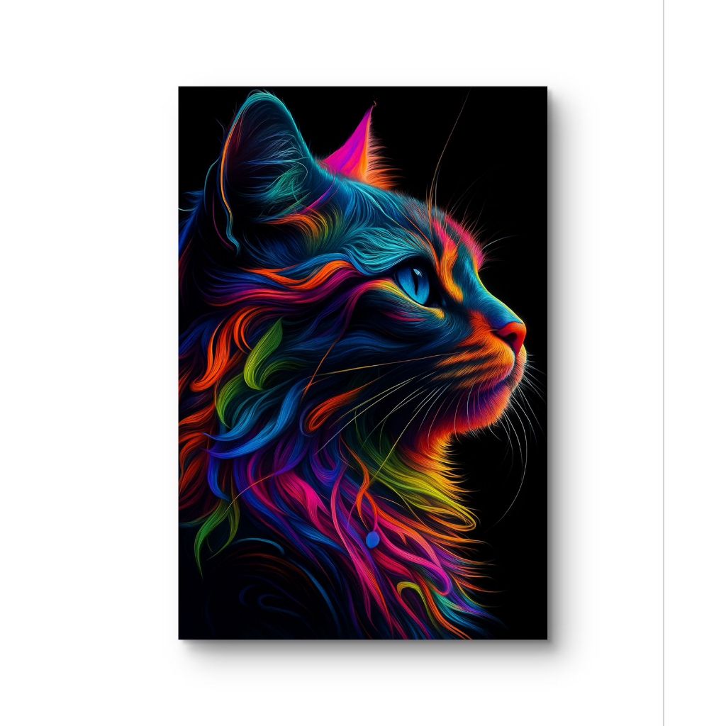 Quadro Decorativo Gato Colorido Neon Em MDF 110x80 Arte Moderna Abstrata Vibrante