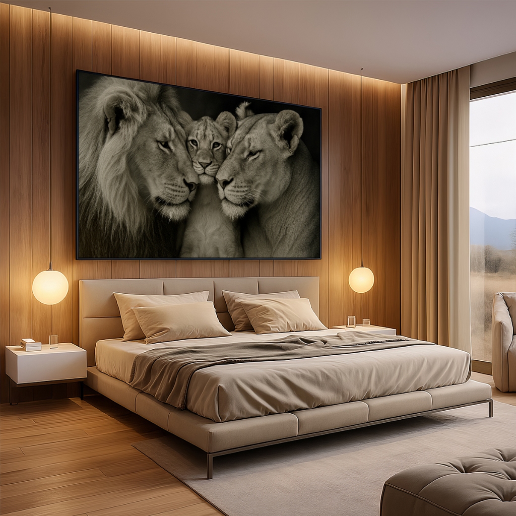 Quadro Decorativo GRANDE Alta Resolução Escritório Quadro Familia Leão Leoa e filhote Preto e Branco
