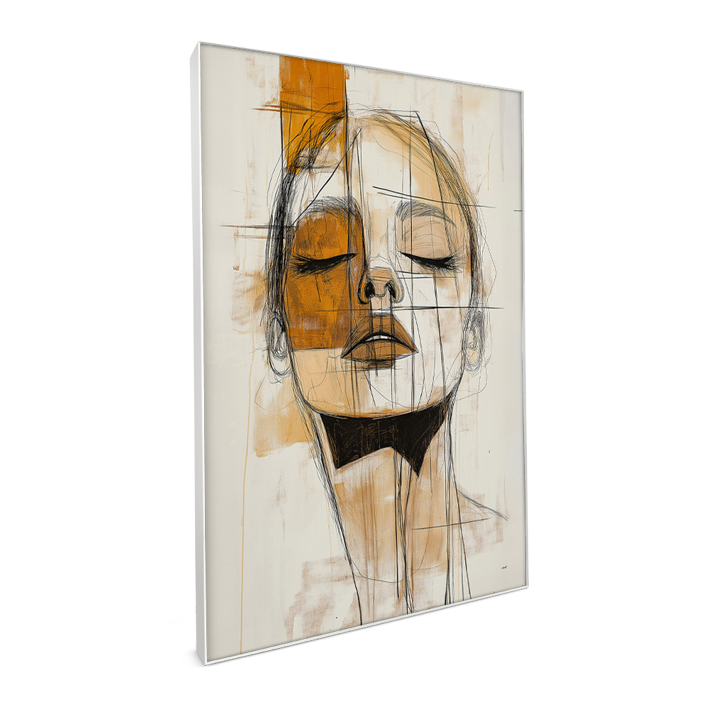 Quadro Decorativo GRANDE Com Moldura Filete Vidro Sala Escritório Abstrato Pintura Desenho Feminino