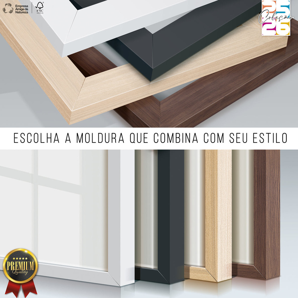 Transforme seu ambiente com elegância e personalidade. Nossos quadros Decorativos são produzidos com materiais de alta qualidade, acabamento profissional e design versátil, combinando perfeitamente com salas de estar, quartos, escritórios, Cozinhas e outros espaços. Escolha entre nossos modelos exclusivos e valorize sua decoração com estilo e sofisticação. Características do Produto: ACOMPANHA ACABAMENTO EM FLEXIGLASS OU VIDRO 100% CRISTALINO. • 3 quadros c/ moldura formato: 45x63cm (imagem 42x60). • 3 quadros c/ moldura formato: 33x45cm (imagem 30x42). Moldura em madeira imunizada, 100% livre de imperfeições e revestida com acabamento melamínico. Fundo em madeira Eucatex, com selo FSC de responsabilidade ambiental. Corte e acabamento com maquinário de alta precisão. Embalagem segura e personalizada para garantir a integridade do produto no transporte. Garantia de qualidade: ou você ama ou seu dinheiro de volta. Design Versátil Com visual clean, moderno e sofisticado, nossos quadros são ideais para diversos estilos de decoração. O tom neutro e o material resistente tornam cada peça um complemento harmonioso e duradouro para seu ambiente. PERGUNTAS FREQUENTES: QUALIDADE DE IMPRESSÃO Impressão em Vinil Matte Antirreflexo, utilizando a premiada Epson SureColor, líder no mercado de impressão de imagens com cores vivas e durabilidade excepcional. EMBALAGEM Embalagens projetadas sob medida, com camada dupla de papelão e plástico bolha tipo almofada, garantindo máxima proteção contra impactos e quedas. PRODUTO DANIFICADO NO TRANSPORTE Em raríssimos casos de avaria, nossa equipe oferece suporte rápido e direto para resolver a situação sem burocracia. Estamos à disposição para te atender com agilidade. INSTALAÇÃO Recomendamos instalação tradicional com parafusos e buchas. Devido ao peso e à qualidade do material, não indicamos o uso de fitas dupla face. LIMPEZA Limpeza simples com pano úmido. As molduras possuem tratamento antimofo e o material é à prova d’água.
