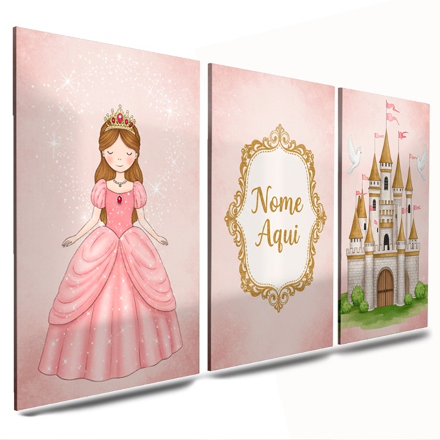 quadro decorativo infantil de menina (nome personalizado) princesa castelo rosa