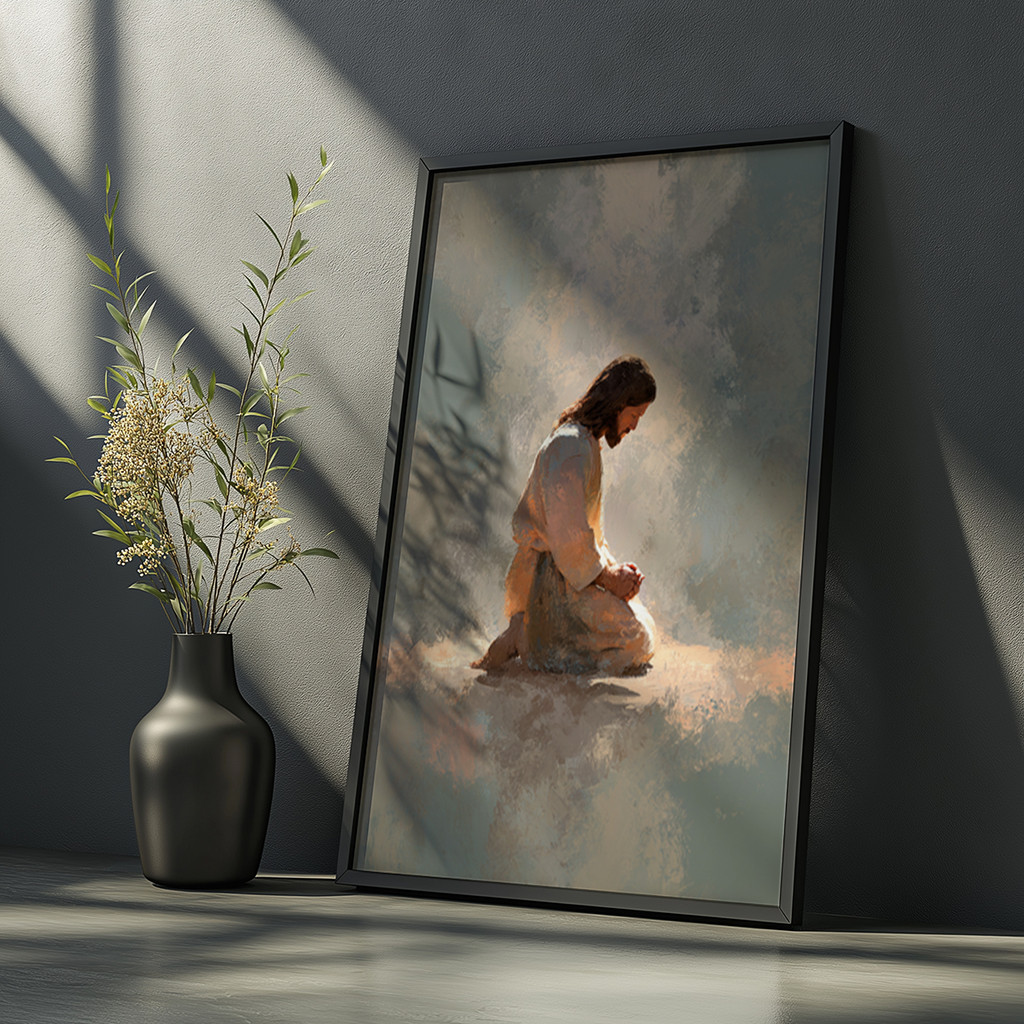 Quadro Decorativo Jesus Em Oração Fé Esperança Cristão Pintura Luz Espiritual Devocional