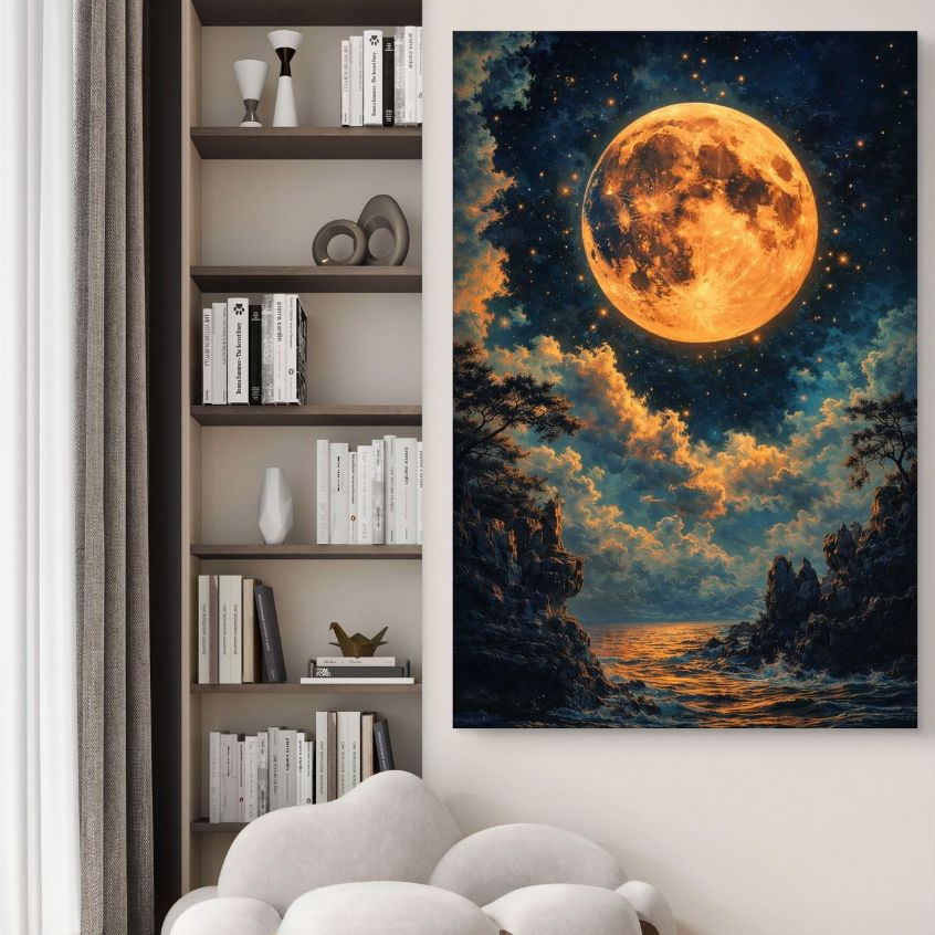| Quadro Decorativo Lua Cheia Dourada Céu Estrelado Paisagem Noturna ... este produto | R$ 16,90 | 53% | 5.0/5 | 4 |