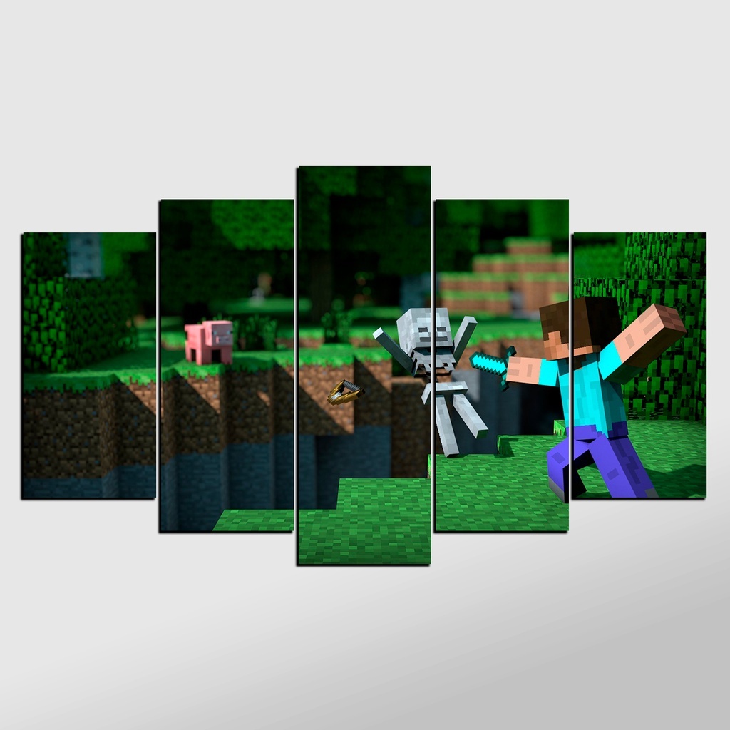 Quadro Decorativo Minecraft Game Quarto Mosaico Promoção
