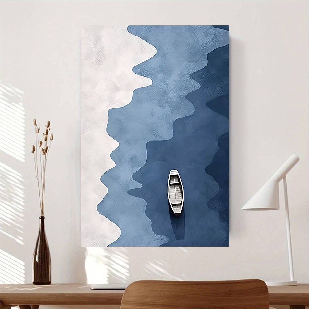 Quadro Decorativo Náutico Azul Branco Cena Costeira Serena Parede Sala de Estar