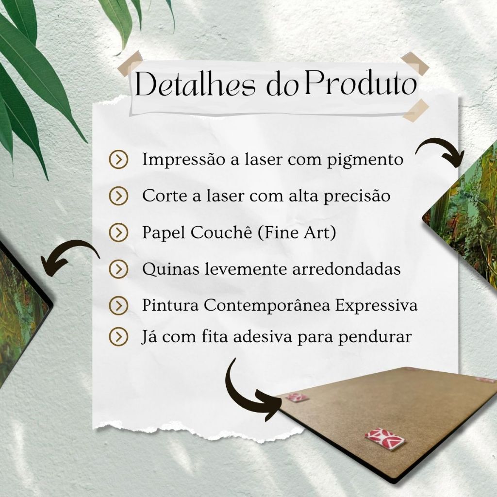 Adquira uma obra única e vibrante, inspirada nas poderosas figuras das religiões de matriz africana, como Orixás e Entidades de Umbanda e Candomblé. Com estilo impressionista, essas pinturas capturam a energia, misticismo e força espiritual de maneira moderna e expressiva. Perfeitas para quem busca trazer beleza, espiritualidade e um toque cultural afro-brasileiro ao ambiente, essas peças são ideais para decorar e energizar qualquer espaço. Detalhes do Produto: • Corte a Laser – Acabamento perfeito. • Impressão a Laser em Papel Couchê – Alta qualidade e cores vibrantes. • Fita Adesiva Inclusa – 04 pontos para fácil pendura. • MDF 3mm – Material resistente. • Versátil – Pendure de diversas formas; sugerimos uma composição. • Quinas levemente arredondadas Obra Exclusiva – Pintura impressionista contemporânea com temas de matriz africana.