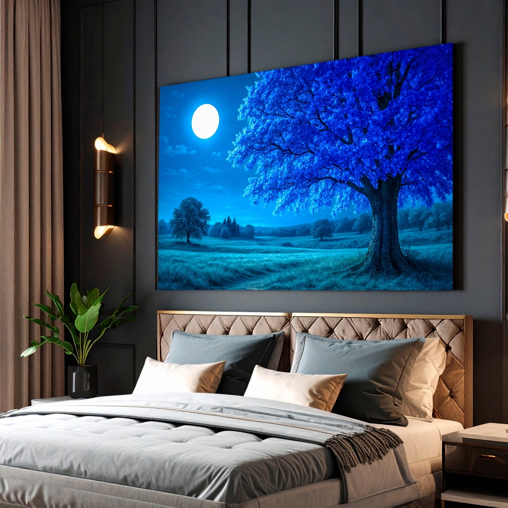 Quadro Decorativo Painel Arvore Azul Paisagem Escritório Sala Quarto 110x80