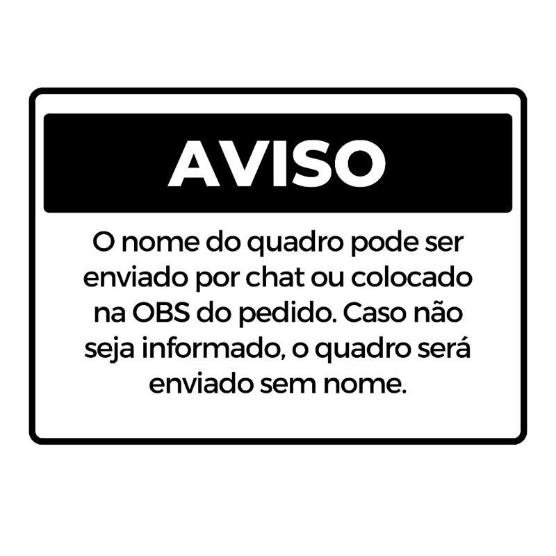OBSERVAÇÕES CASO DESEJE OUTRO TAMANHO ENTRAR EM CONTATO PELO CHAT, ESTE ANÚNCIO SE REFERE SOMENTE AO TAMANHO 20X30. MODELO PLACA MDF - Não acompanha moldura - Finalizado em MDF 3mm adesivo vinílico fosco e fita dupla face para fixação na parede MODELO QUADRO COM MOLDURA E ACETATO - Moldura produzida com madeira reflorestada na cor preta - Acetato ( película de proteção que imita vidro) - Pendurador movél - Fundo em MDF 3mm