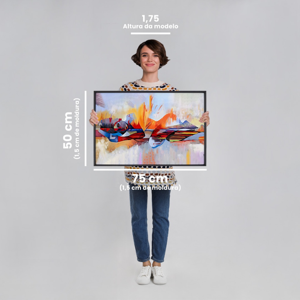 QUADRO DECORATIVO PINTURA MULHER ABSTRATO MODERNO E COLORIDO COM MOLDURA SALA QUARTO E ESCRITORIO Este quadro é perfeito para transformar qualquer ambiente com sua energia e elegância. A pintura apresenta uma representação abstrata e expressiva de uma mulher, com formas fluidas e linhas dinâmicas que capturam a essência de sua figura de maneira única. As cores intensas e contrastantes, se entrelaçam de maneira criativa, criando uma composição visualmente estimulante e cheia de movimento. Com seu estilo único e impactante, este quadro é uma excelente escolha para quem deseja adicionar um toque de arte e personalidade ao ambiente. Dimensões Disponíveis : Disponível em três tamanhos versáteis para diferentes ambientes: 50x75 cm , 60x90 e 80x120. Perfeito para dar destaque a paredes menores ou criar composições elegantes em espaços compactos. Ideal para preencher paredes maiores, proporcionando um impacto visual marcante em salas de estar, quartos ou escritórios. Você pode escolher as opções de cor da moldura e também pode optar pelo quadro com ou sem vidro.