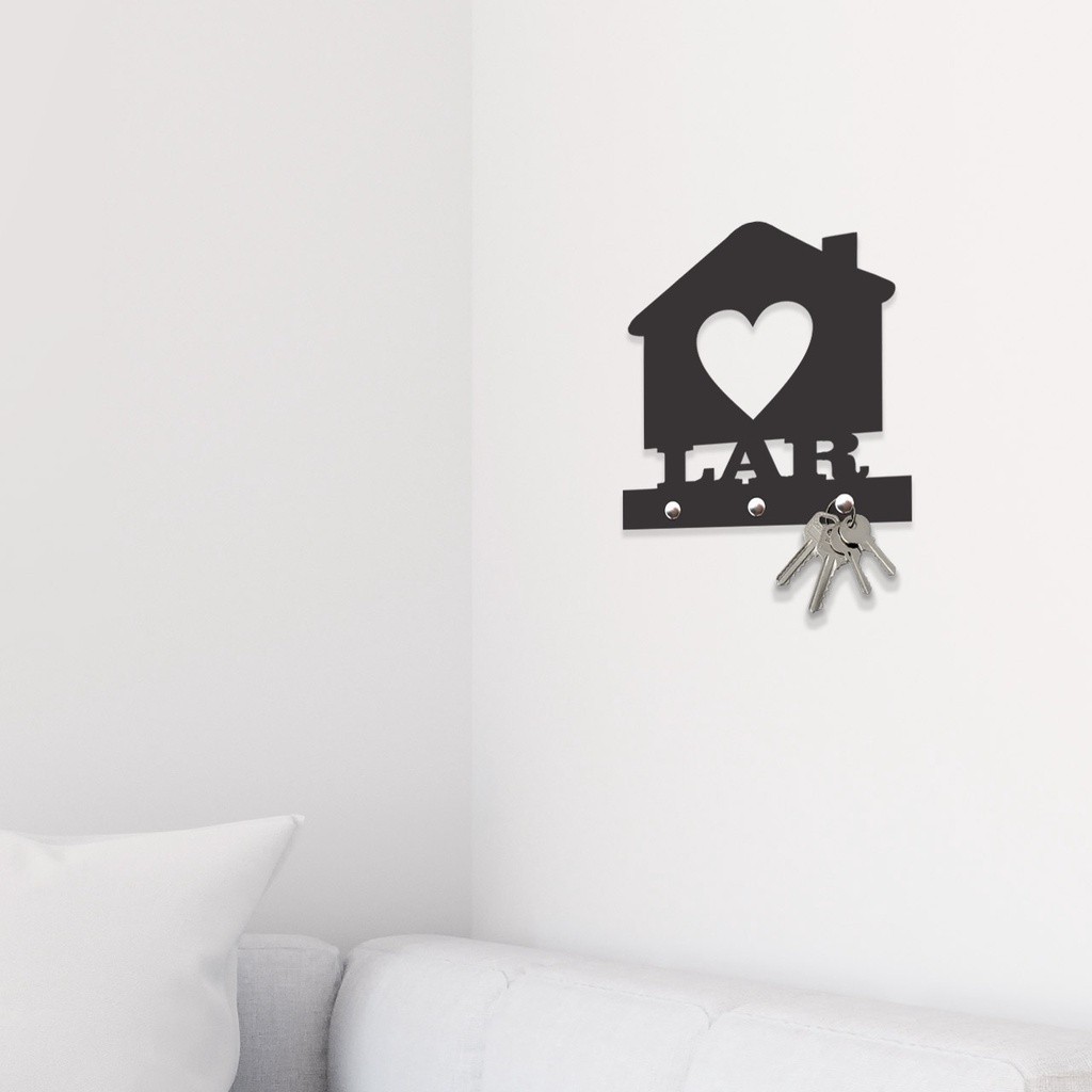 Quadro Decorativo Porta Chaves Lar MDF 3mm Preto Fosco