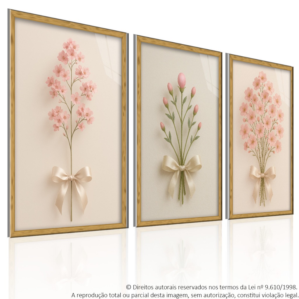 Quadro decorativo quarto minimalista flores laço rosa decoração sala escritório