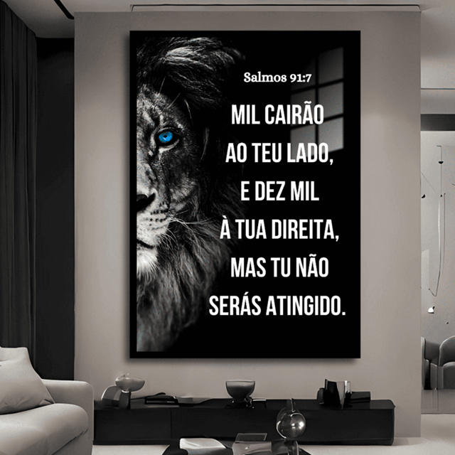Quadro Decorativo Religioso Leão de Judá Salmos 91 Bíblia Fé Sala Quarto