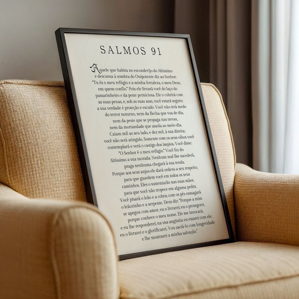| Quadro Decorativo Salmos 91 O Senhor é O Meu Refúgio Oração de Prot... este produto | R$ 29,99 | — | 4.9/5 | 100 |